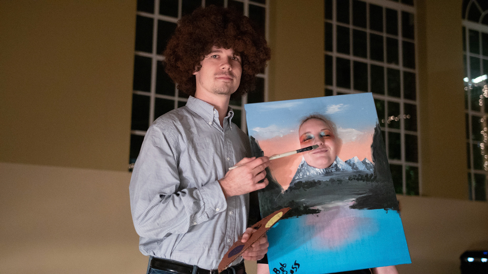 Seniors Josiah Barkdoll and Savannah Butler as Bob Ross and Painting